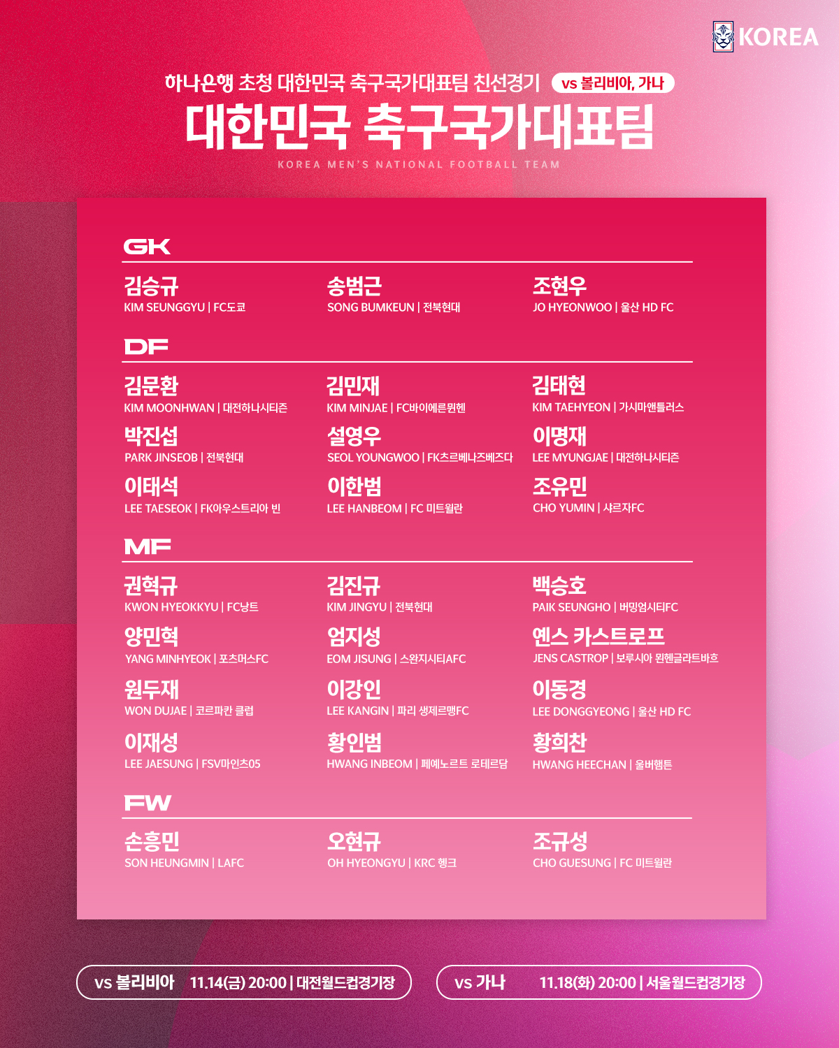 2025 하나은행 초청 축구 국가대표팀 친선경기