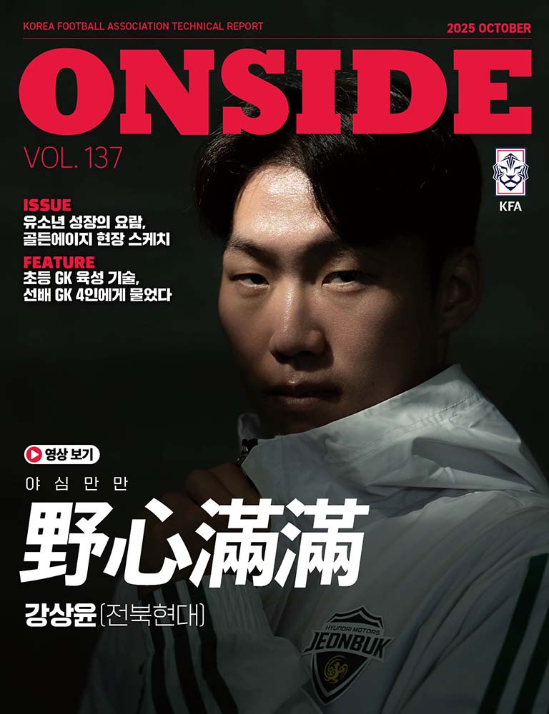 ONSIDE는 대한축구협회가 발행하는 축구 기술보고서 겸 매거진입니다. 반칙이 적용되지 않는 바른 위치라는 의미로 오프사이드의 반대말입니다. KFA와 한국 축구도 반칙 없이 바른 위치에서 바른 마음가짐으로 활약하겠다는 함축적 의미를 내포하고 있습니다.